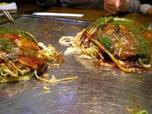 かき混ぜるお好み焼きもおいしいけど、広島風のそば入りもおいしいね。