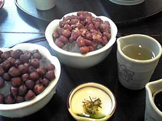 寒天の上に、一つは赤えんどう豆、もう一つは小豆がのっててさっぱりおいしかったー。
